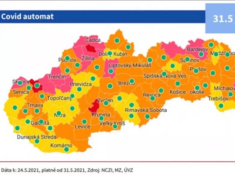 Egyre kedvezőbb a járványhelyzet Szlovákiában. Az ország 60 járása már narancs vagy még jobb besorolású.