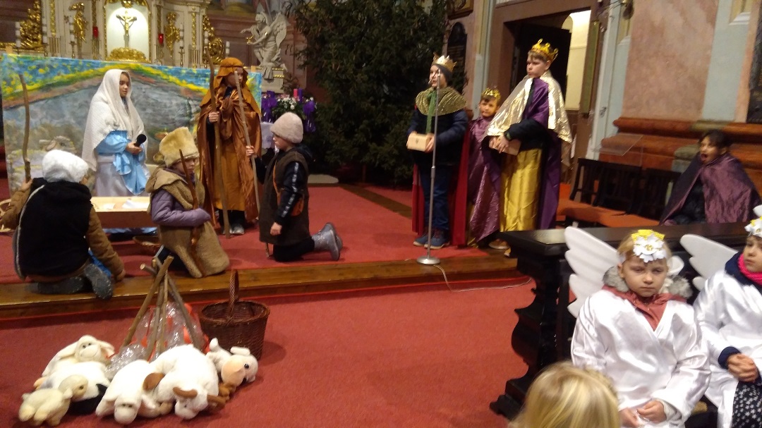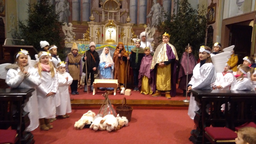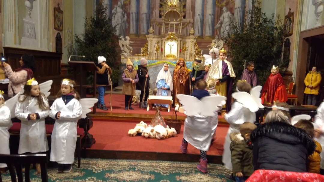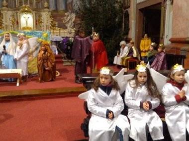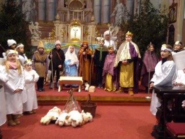 Karácsonyi pásztorjátékkal elevenitették fel a gyerekek Jézus születésének bibliai történetét a somorjai római katolikus templomban.