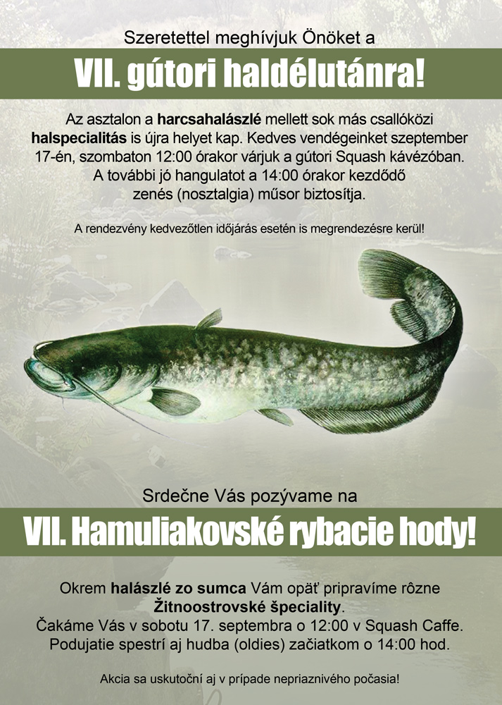 Haldélután Gútoron2016.9.14. 14:04Peter GáborSzeptember 17-én szombaton 12:00 órától a gútori Squash kávézóban megrendezésre kerül a VII. gútori haldélután. Megosztás: