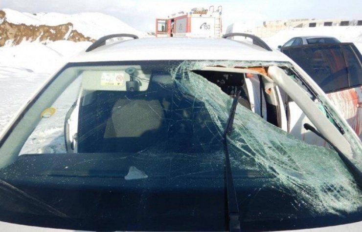 Kórházba kellett szállítani egy Škoda Octavia 54 éves sofőrjét, miután egy hatalmas jégdarab zuhant a járművére egy szemből érkező kamionról.
