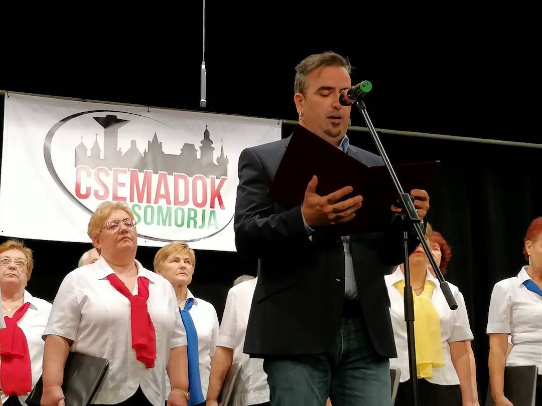 Bárdos Gyula, a Csemadok országos elnöke elismeréssel szólt a somorjai művészeti csoportok színvonalas podukcióiról és a helyi szervezet kiemelkedő tevékenységéről, amely országos viszonylatban is a legjobbak közé tartozik. „A Csemadok évek óta nem kap semmilyen állami támogatást, mégis működik és gyarapodik, tagságunk önfeláldozó munkájának köszönhetően” -- hangsúlyozta. Mindezt nemrég Esztergomban Szent István- díjjal, korábban pedig Brüsszelben rangos kitüntetéssel ismerték el-- közölte.