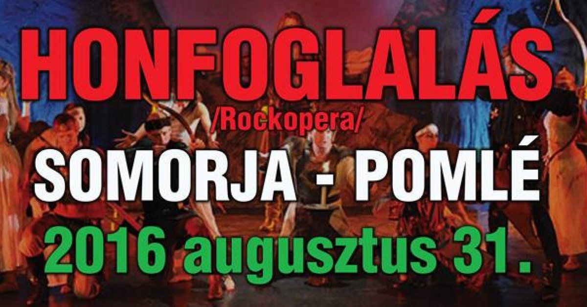 2016.augusztus 31-én, szerda este 20:00-tól Somorján a Pomléban a Szigetszentmiklósi Sziget Színház előadásában, Pintér Tibor főszereplésével lesz látható a legendás Honfoglalás c. filmből készült rockopera.