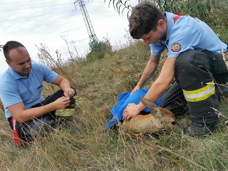 Az állat egyedül képtelen volt kimászni a vízből és félő volt, hogy megfullad. Amikor a tűzoltók a helyszínre értek, az őz már láthatóan ereje végét járta és egyik parttól a másikig úszkált.