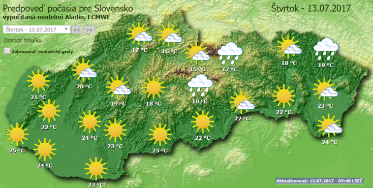 A Szlovák Hidrometeorológiai Intézet előrejelzése szerda éjszakára és csütörtökre.