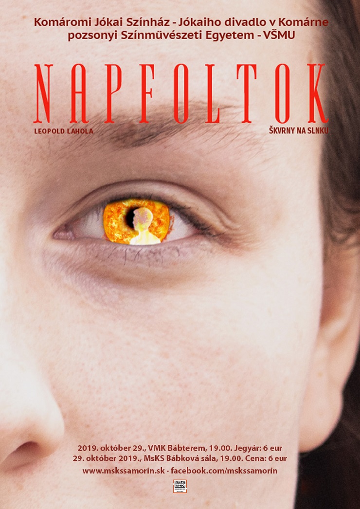 A Komáromi Jókai Színház és a pozsonyi Színművészeti Egyetem előadásában láthatja a somorjai közönség a Napfoltok című előadást.