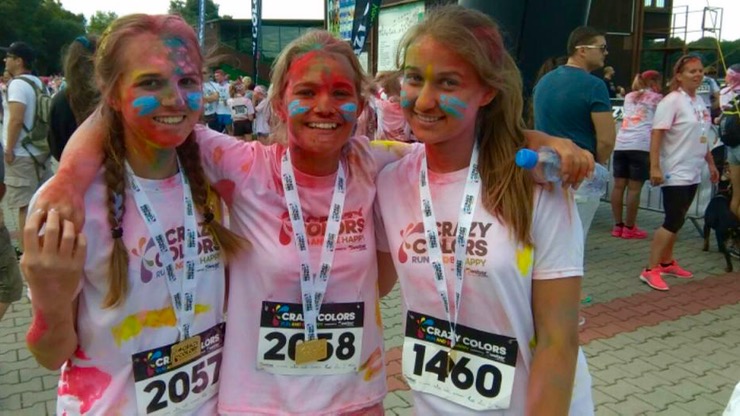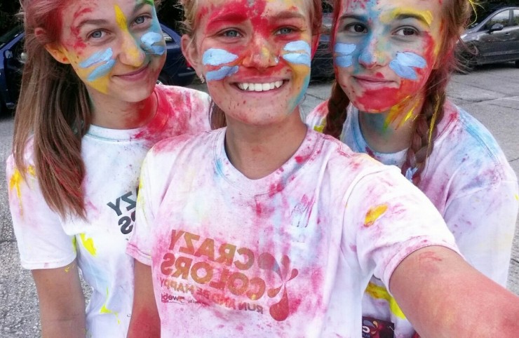 Viac ako tisíc účastníkov sa dnes podvečer zúčastnilo v Bratislave 1. ročníka najbláznivejšieho a najfarebnejšieho behu na Slovensku s názvom CRAZY COLORS. Medzi “veselými” bežcami boli aj tri dievčatá zo Šamorína - Elenka Bodnárová, Tánička Gáborová a Viki Kissová.