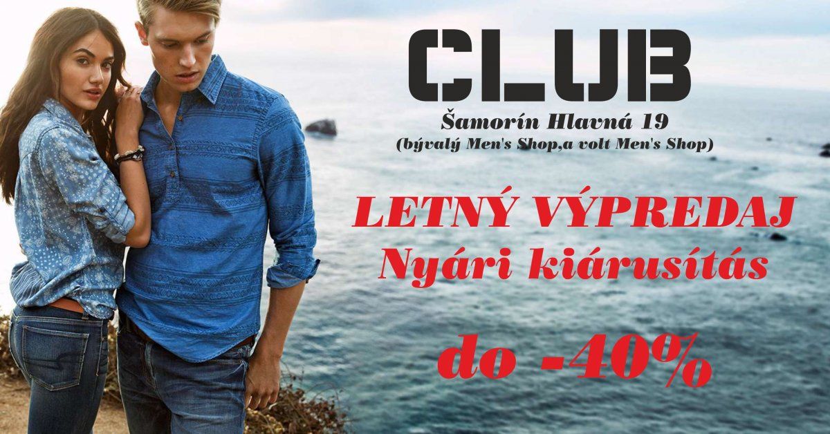 A somorjai CLUB Divatüzlet szeretettel meghívja nagy nyári leárazására. Minden kedves vásárlót -10 -20 -30 -40 % kedvezményekkel várunk!