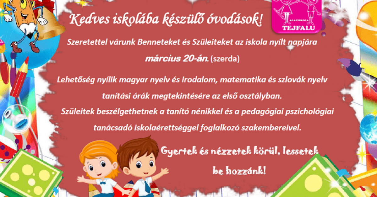 Sok szeretettel várnak  minden iskolába készülő óvodást március 20-án, szerdán  reggel 8:00 órától az iskola nyílt napján.