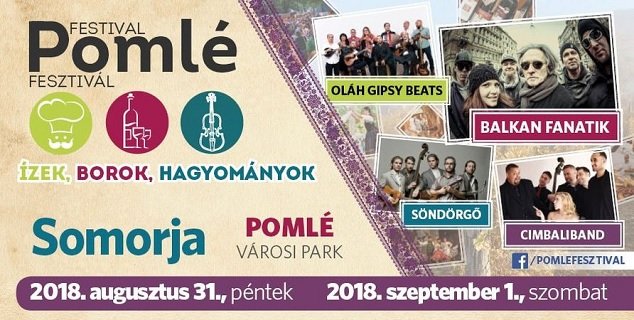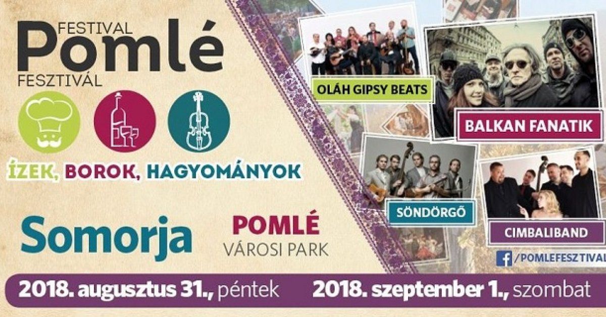 2018. augusztus 31-én és szeptember 1-én, pénteken és szombaton kerül megrendezésre Somorján az idei Pomlé Fesztivál a Városi parkban. Neves hazai és külföldi borászok, hagyományos és különleges tájjellegű ételek, játszóház, kézművesvásár, néptáncelőadások és koncertek kicsiknek és nagyoknak. Mindenkit szeretettel várnak a szervezők.