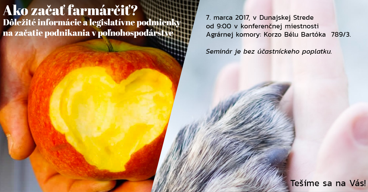 Fontos tudnivalok és lehetőségek a háztáji termelésben elnevezésű szakmai fórumára, amelyre 2017. március 7-én 9:00 –tól kerül sor Dunaszerdahelyen az Agrárkamara székhelyén, cím: Bartók Béla sétány789/3.