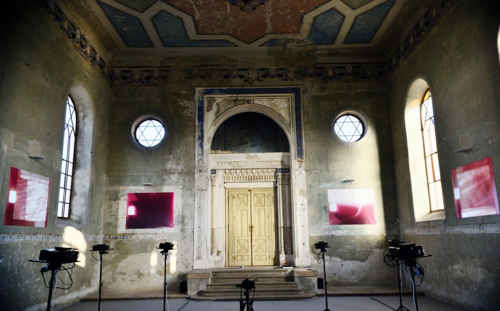 A Duna szlovákiai túlpartján, a kis csallóközi város volt kereskedőnegyedében álló, huszadik század elején épült zsinagóga At Home Gallery néven két évtizede ad helyet kiállításoknak, installációknak, koncerteknek. Progresszív, az intermedialitást előtérbe helyező galéria, melynek igényes nemzetközi repertoárja házigazdái Kiss Csaba és felesége, Suzanne. A zsinagóga visszafogottan felújított külseje, szerencsésen érintetlenül megőrzött, finoman pusztuló belsejének igazi és szinte egyetlen főszereplője tud lenni a fény. Fény és kimondhatatlanság, amint az ide járt zsidók sem mondták ki Jahve nevét tiszteletből és félelemből a fogság óta. Csak a néma, beszédes fény lakik, lakozik tehát a somorjai zsinagógában és aki most ott jár, magával vihet belőle, Sheri Wills jóvoltából.