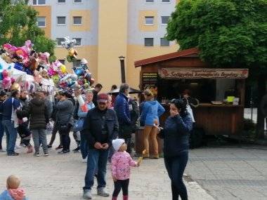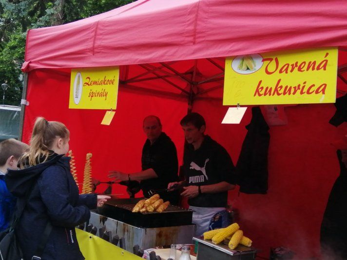 Občerstviť sa môžete v stánkoch so zemiakovými plackami (2,-EUR) cigánskou (3,-EUR), lokšami (1,-EUR), prípadne si dať guláš (4,-EUR), trdelník (3,-EUR), alebo podplameník (2.5,-EUR).