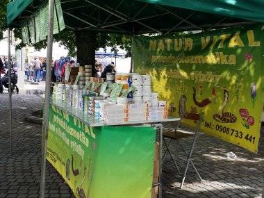 V stánkoch nájdete remeselné výrobky, šperky, bižutériu, tovar zo skla, prútia i dreva, hračky, domáce potreby, textil, koženú galantériu.