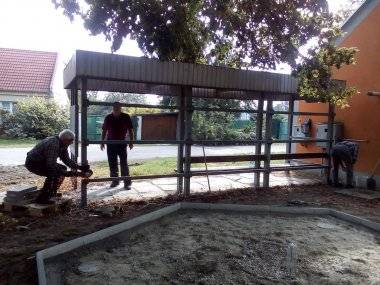 Podarilo sa nám na projekt získať zmluvu TTSK. Počas leta po vyhotovení dokumentácie, ktorú urobila Martinka, sme získali aj povolenie na stavbu altánku a úpravy v parku od MÚ Šamorín. V septembri začali práce na výstavbe altánku. Keďže nie je sprístupnený verejný zdroj elektrickej energie, pomohol z vlastných zdrojov sused Milan Kovalčík. Stavba altánku bola zverená profesionálnej firme, objednali a namontovali sa sedenia okolo stromov a chodníčky zapustila firma ABBIES z Čilistova. Susedia prišli urovnať a upraviť terén.