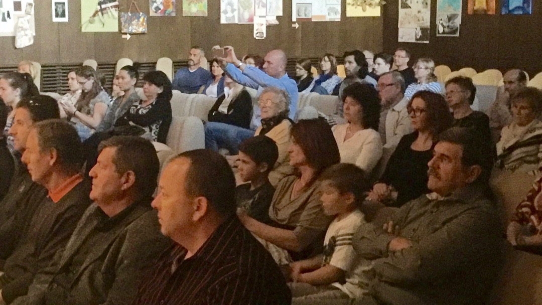 Prekvapením večera bol spevácky zbor Sancta Maria, ktorý sa pripojili ku koncertu sediac v hľadisku.