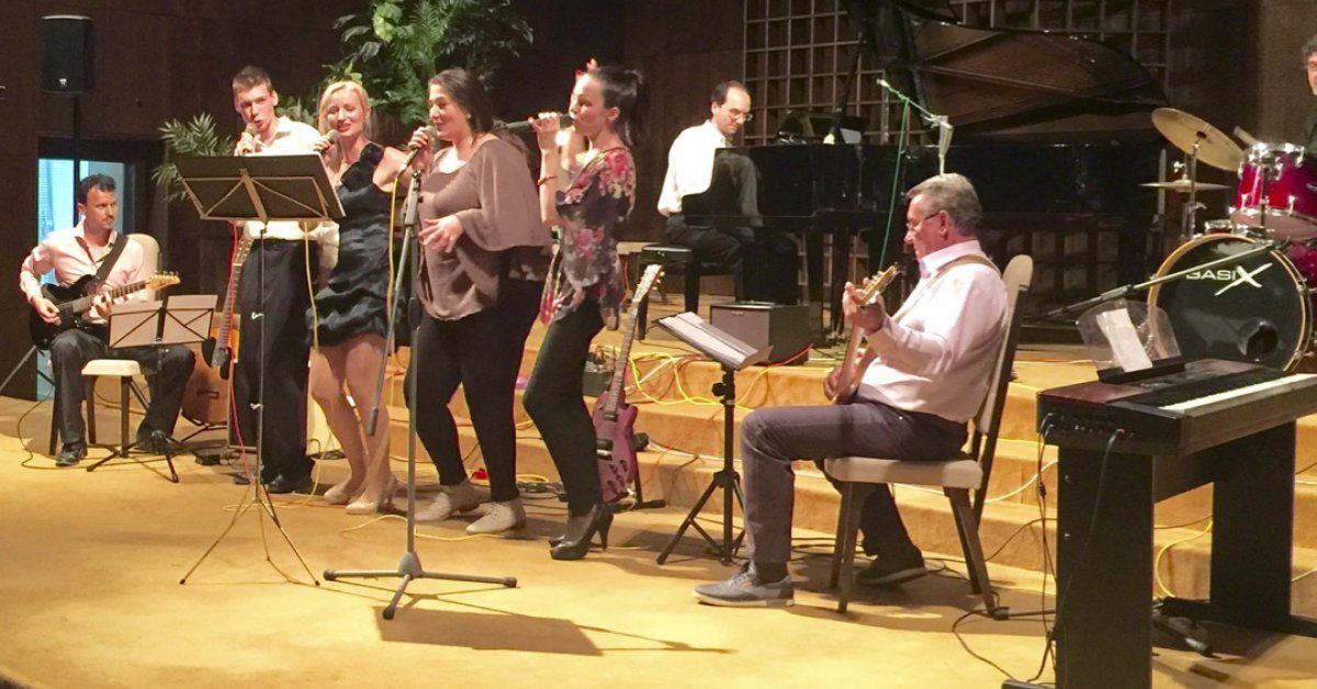 Za učiteľskú kapelu ZUŠBAND sa predstavili Inka Galbáčová, Alexander Strieženec, Ernest Mezei, Jaroslav Roček a Arnold Szabó.