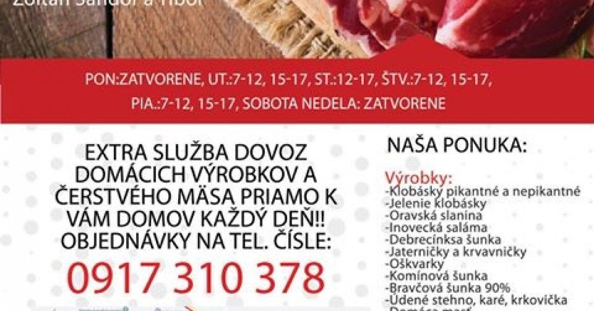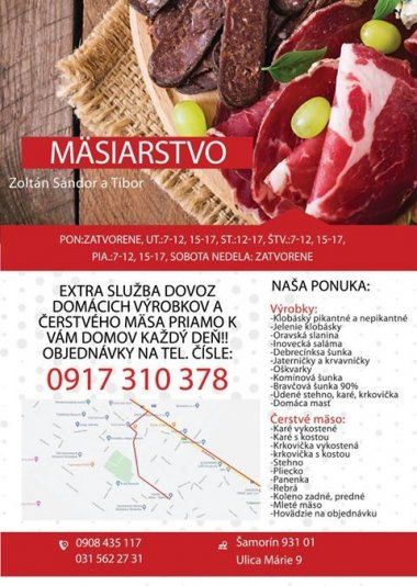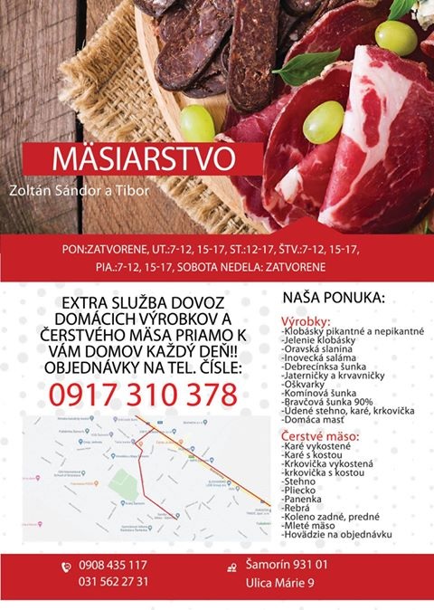 Koronakríza mení zaužívané podnikateľské praktiky28.4.2020, 08:00OznamĎalší z obchodov v Šamoríne rozširuje svoje služby o službu donášky k zákazníkom. Patrí k nim aj mäsiarstvo Sándor, ktoré denne rozváža svoje výrobky všetkým záujemcom. Viac o ponuke po kliknutí na čítaj ďalej.Zdieľať: