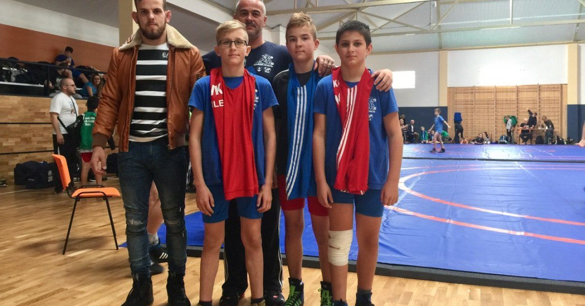 Potom sa už chlapci v kategórii mladší žiaci pustili do zápasenia. Želiezka v ohni mal aj náš klub ZK Gladiátor, reprezentovali ho Jurko Čukan, Marek Bartaloš a Mátyás Szeiler.