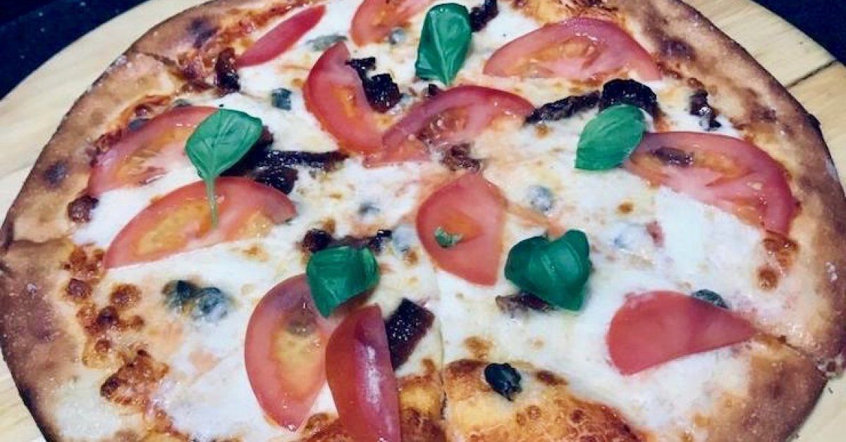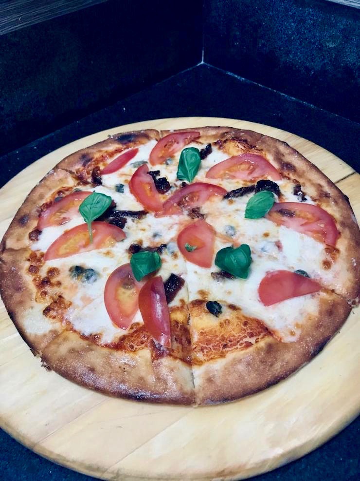 Špeciál na november: 750 g (mozzarella, slanina, čedar, vajíčko, pomodoro). Cena je 9 €.