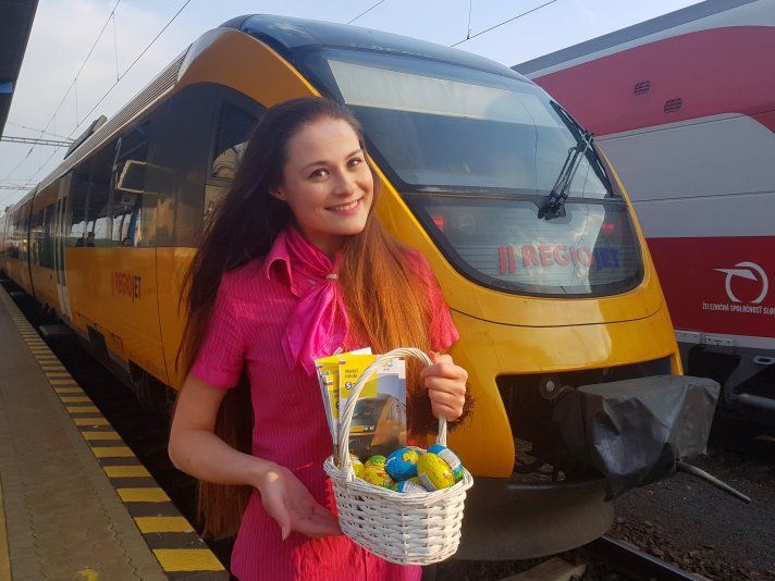 Keďže RegioJet vstúpil do integrovanej dopravy počas veľkonočných sviatkov, pre prvých cestujúcich na linke S70 sme si pripravili sladké prekvapenie. Naše stevardky ich ponúknu veľkonočnými vajíčkami vo farbách RegioJetu a integrovanej dopravy spolu s ďalšími informačnými letákmi.