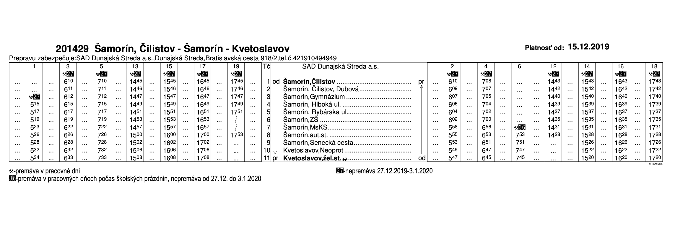 O 6.10 h a 7.10 h začína autobus svoju premávku zo zastávky v Čilistove.