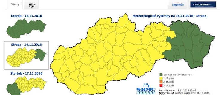 Slovenský hydrometeorologický ústav vydal varovanie 1. stupňa pred poľadovicou. Výstraha platí od dnešnej polnoci do 12.00 hod.