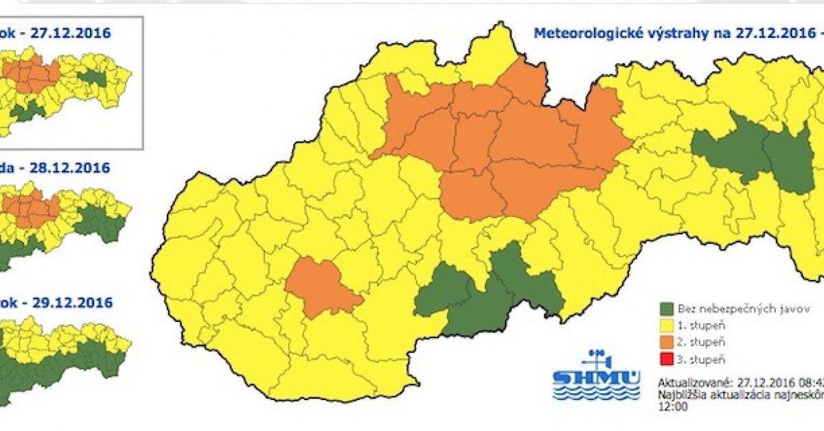 Pre niektoré okresy na severe krajiny platí výstraha druhého stupňa.