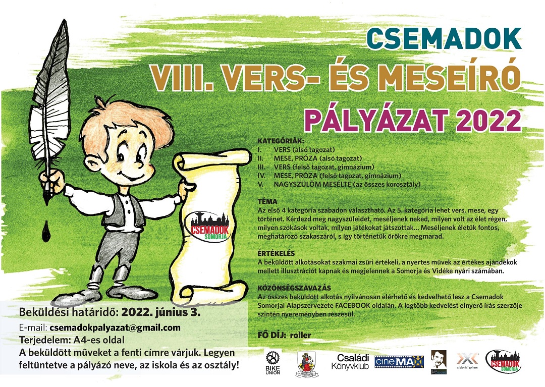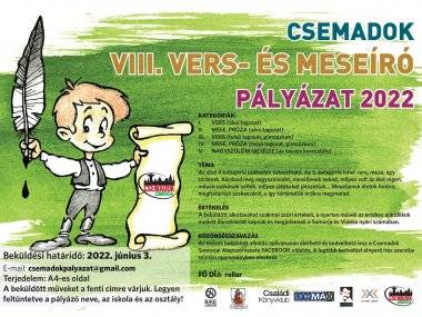 Základná organizácia Csemadoku v Šamoríne po ročnej prestávke opäť vyhlásila obľúbenú literárnu súťaž pre žiakov základných škôl a študentov gymnázia v tvorbe poézie, poviedok a rozprávok. Súťaž tento rok vstúpila do svojho ôsmeho ročníka, jej cieľom je zvýšiť povedomie o význame vzdelávania v materinskom jazyku, pestovania maďarského jazyka a posilnenia skúseností s čítaním a písaním.