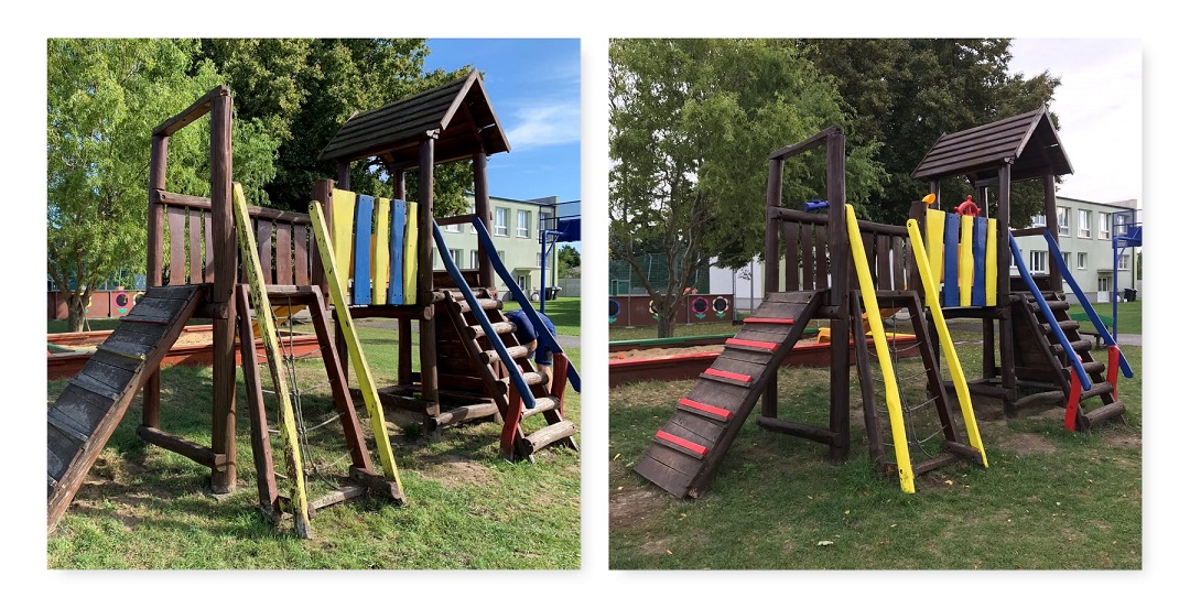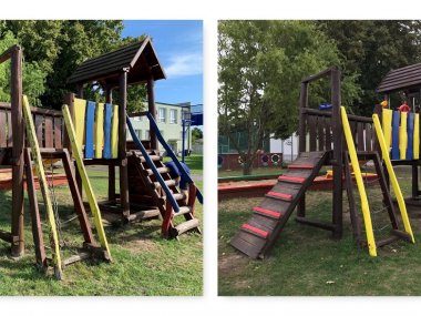 Radosť deti bola obrovská, keď zbadali nové atrakcie na školskom dvore. Ihrisko je krajšie, bezpečnejšie a ponúka viac možností na hru.