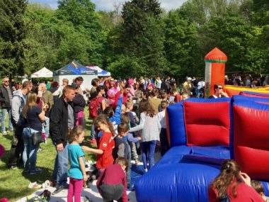 Počasie bolo až „netradične“ pekné a teplé. Do parku prišli stovky ľudí a rodín s deťmi.