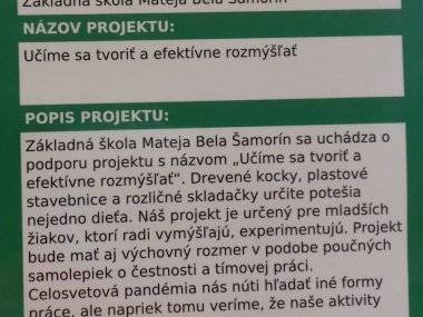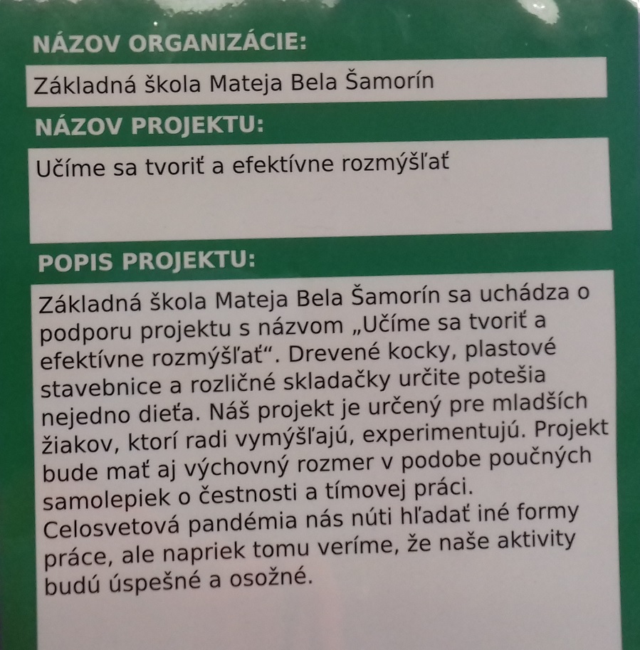 ZŠ Mateja Bela – projekt určený pre mladších žiakov, ktorí radi vymýšľajú a experimentujú.