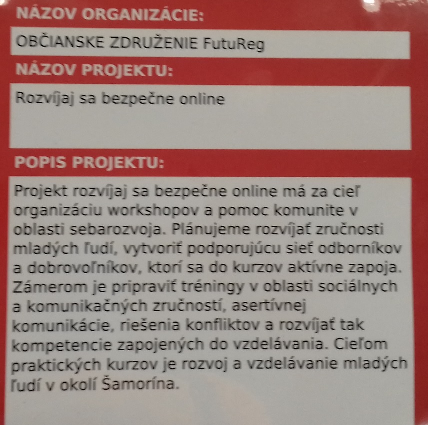 Občianske združenie FutuReg – rozvíjanie zručností mladých ľudí v oblasti sebarozvoja.