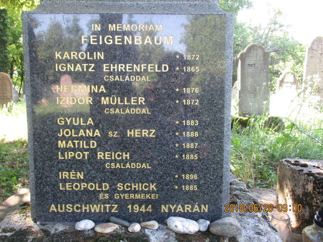 Je tu aj niekoľko symbolických náhrobkov, pod ktorými nikto neleží. Na pamätnej mramorovej tabuli rodiny Feigenbaum nájdeme zoznam mien príslušníkov jednej rodiny. Dožili sa rôzneho veku, ale dátum úmrtia majú všetci rovnaký. Leto 1944, Osvienčim.