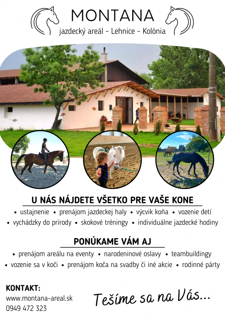 MONTANA - jazdecký areál v obci Lehnice, časť Kolónia. Našou prioritou je spokojnosť koní a našich jazdcov - sme tu pre Vás...