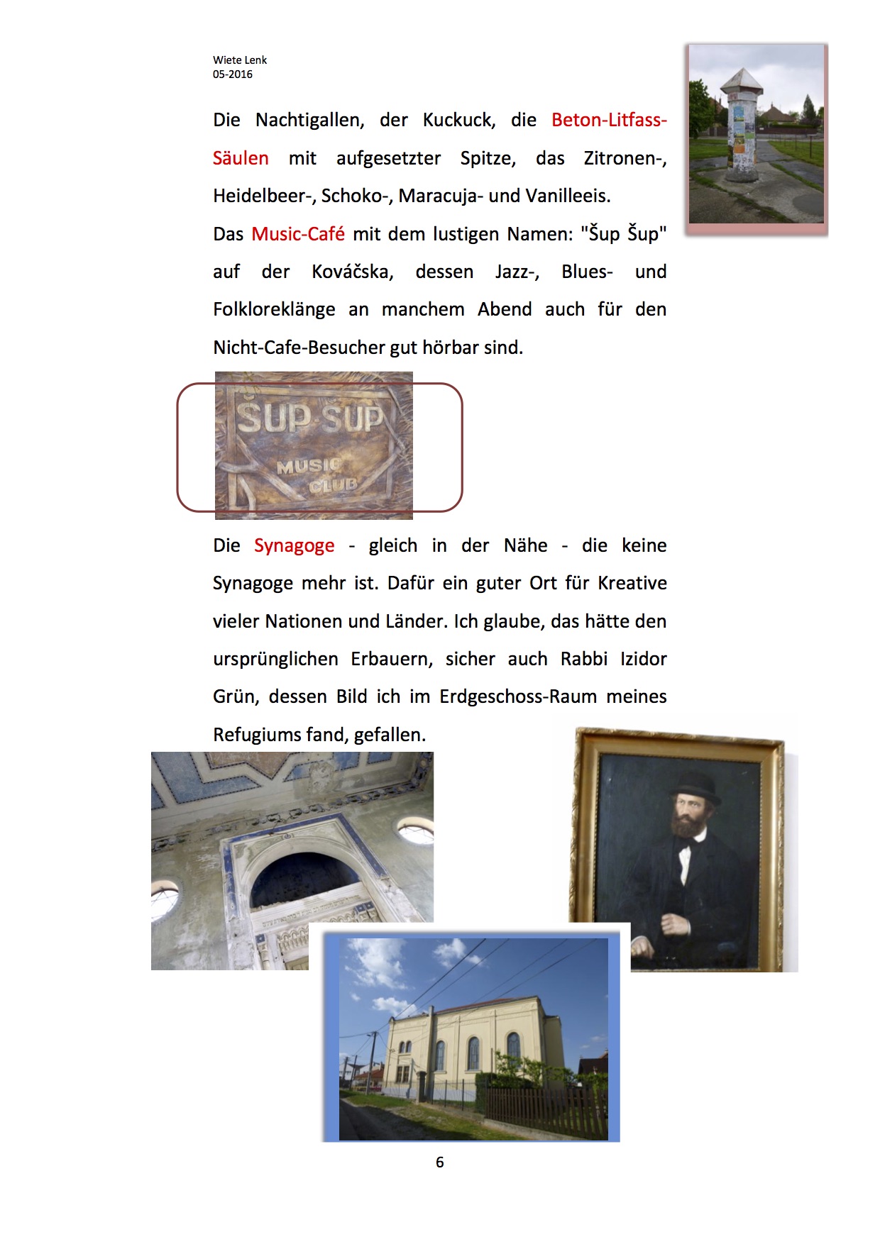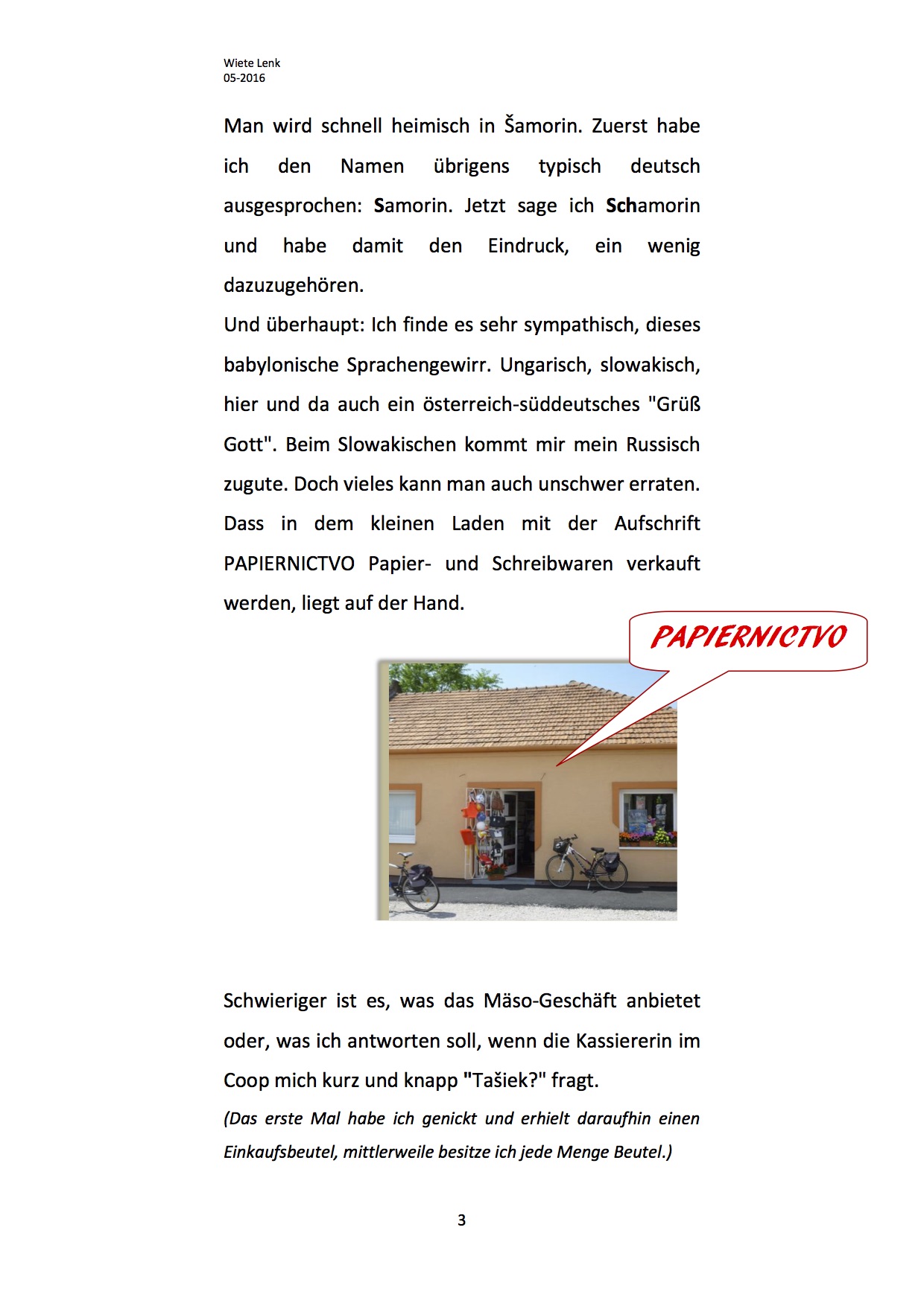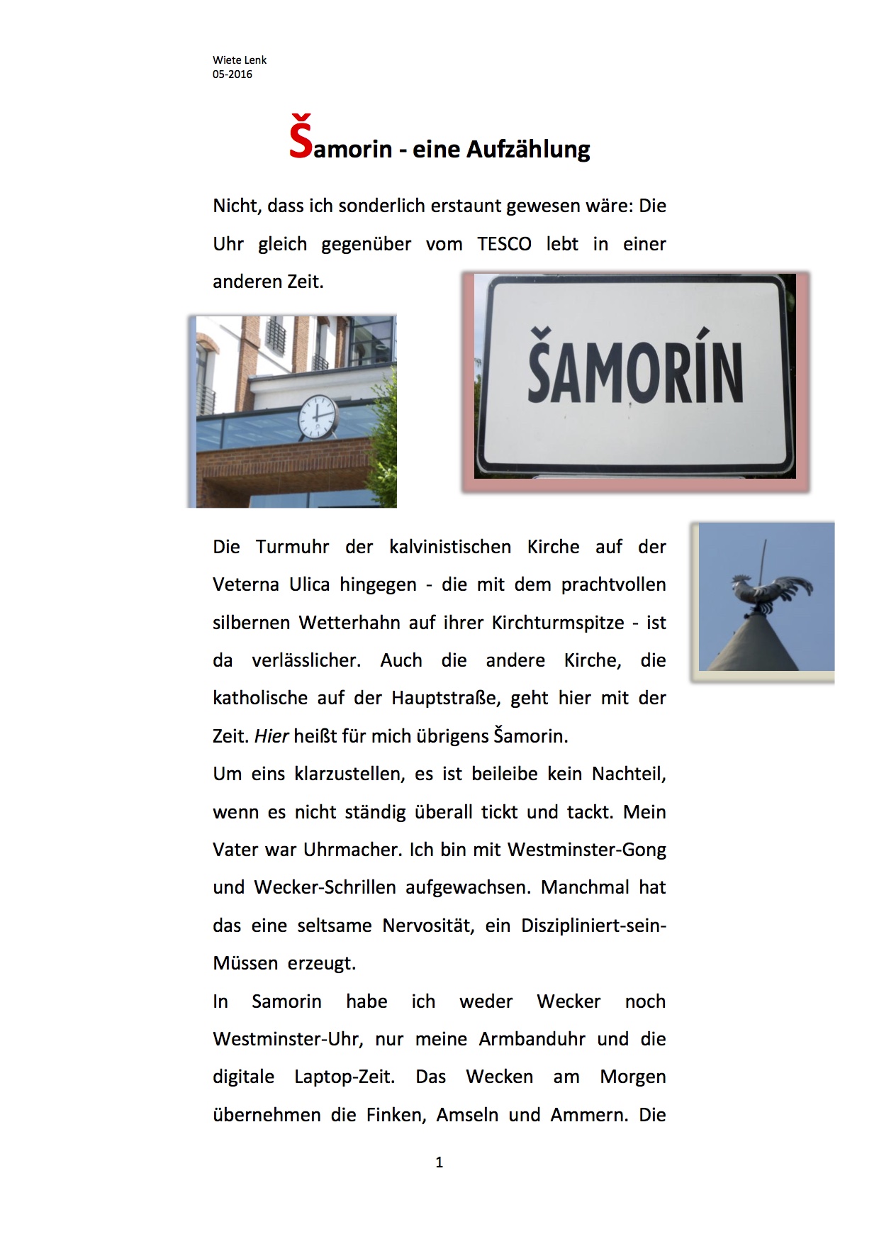 Wiete Lenk však nezostáva len pri románe. Aj v Šamoríne napísala niekoľko poviedok.