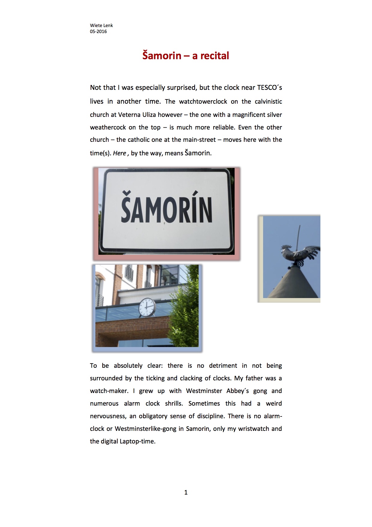 ,,Odohráva sa v období prvej svetovej vojny a v časoch, ktoré nasledovali. A tu v Šamoríne som našla miesto, ktoré mi umožnilo vcítiť sa do nálady toho času a porozumieť ľuďom žijúcich v tom ťažkom období. Našťastie život našej rodiny bol pomerne búrlivý a mám sa aj o čo oprieť,” prezrádza Wiete Lenk.