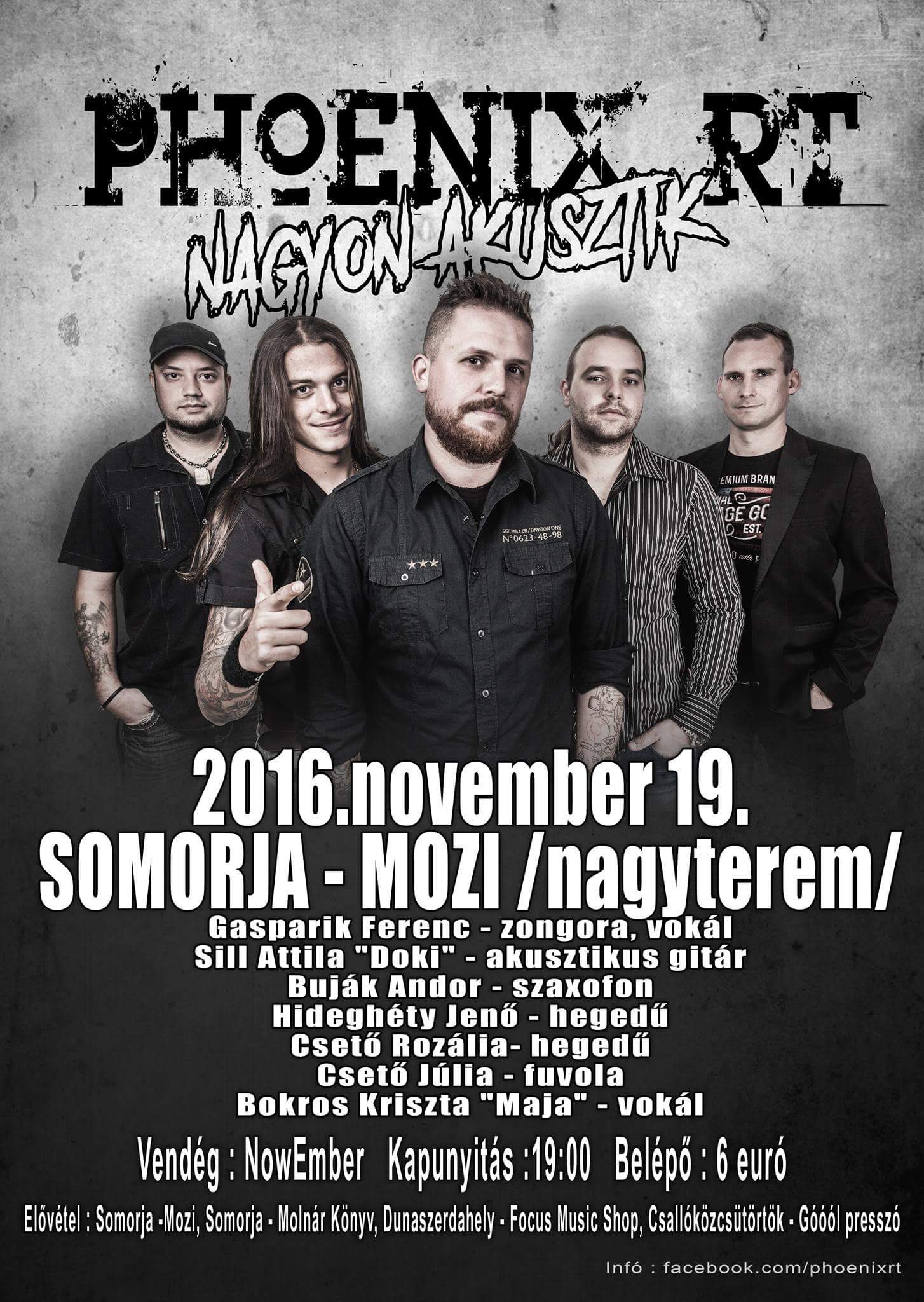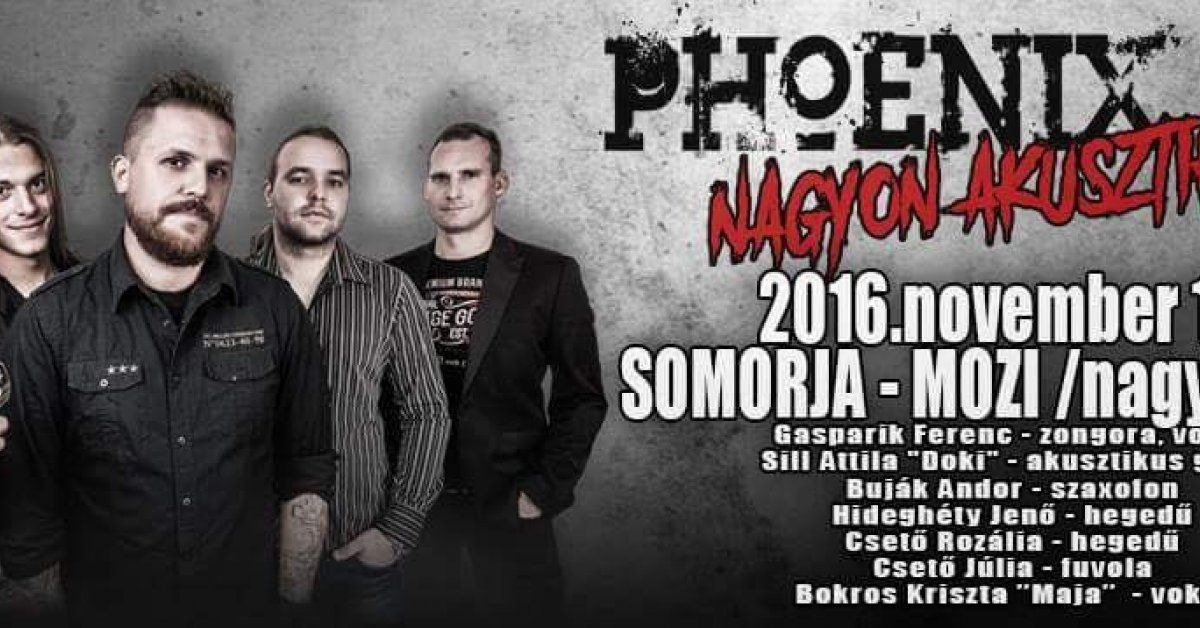2016.november 19-én akusztikus nagykoncertet ad a csallóközcsütörtöki Phoenix RT zenekar a somorjai Mozi nagytermében.