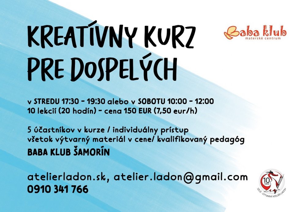 Nové tvorivé kurzy v Šamoríne29.9.2021, 11:11OznamSZUŠ Výtvarný ateliér Ladon rozbieha keramický kurz pre deti s dospelými a druhý kreatívny pre dospelákov v MC Baba v Šamoríne. Bližšie informácie v plagátoch.Zdieľať: