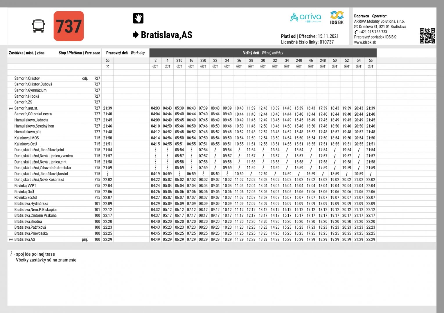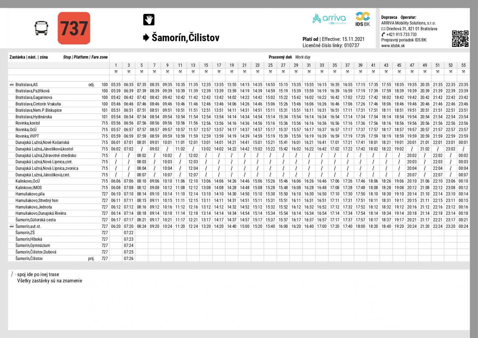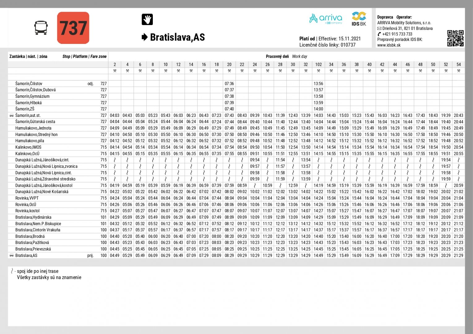 linka 737 - VÄČŠÍ POČET SPOJOV