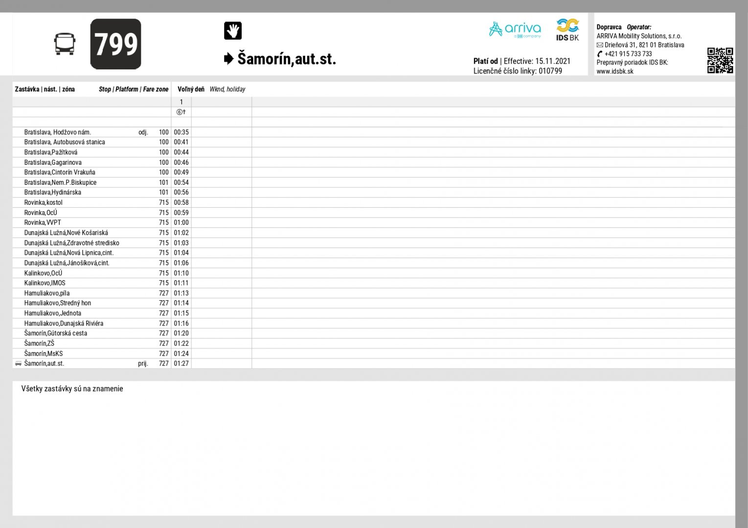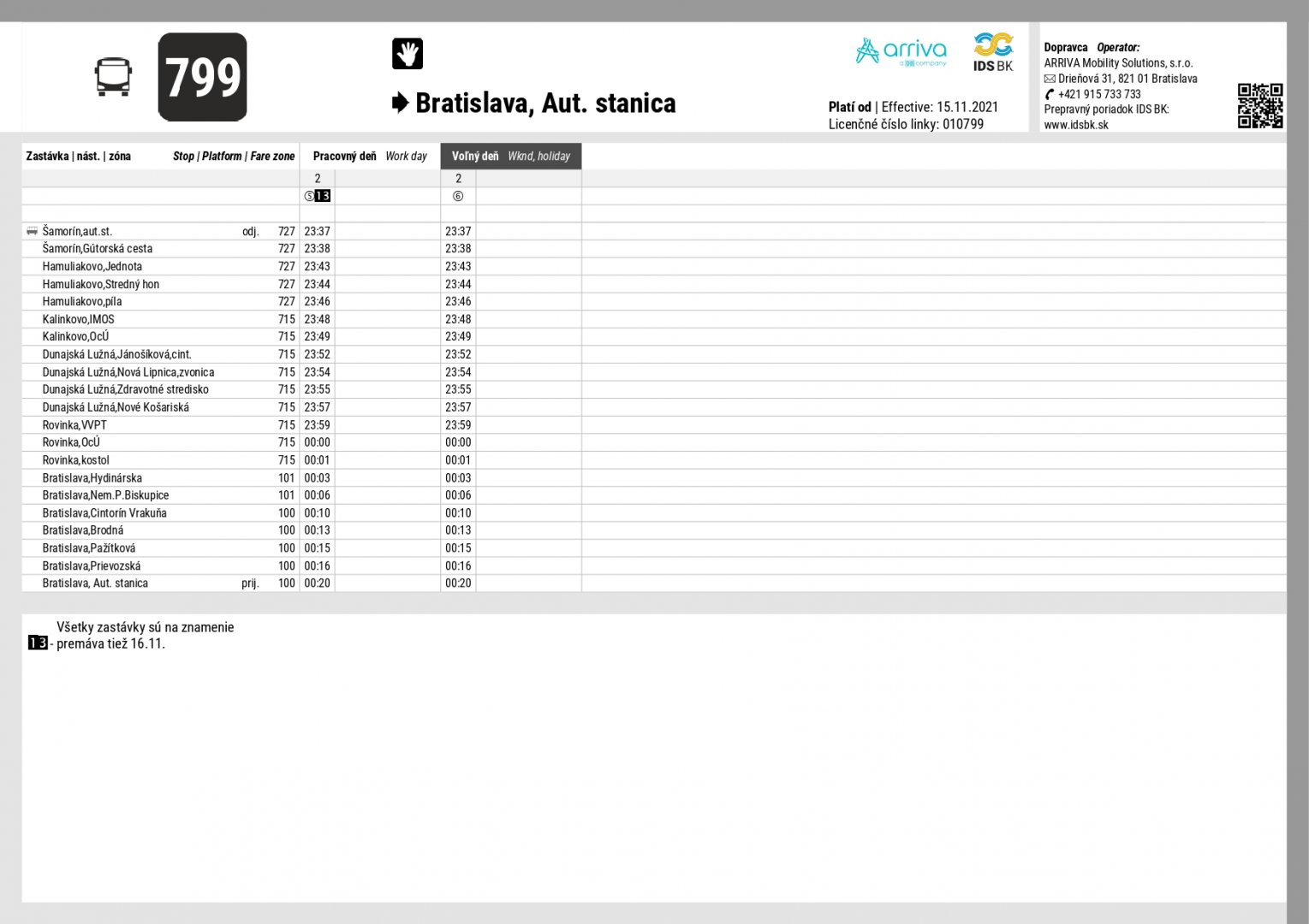 linka 799 - zavedenie NOČNÉHO SPOJA prevádzkovaného DEŇ PRED VOĽNÝM DŇOM