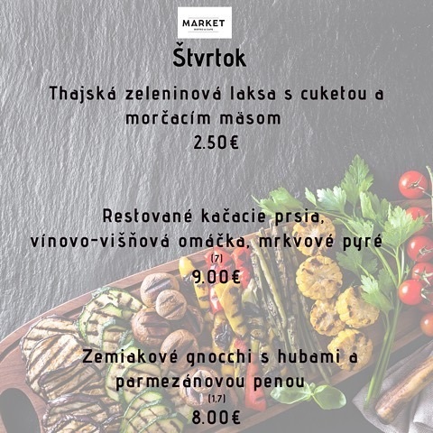 Obedové menu reštaurácie Market Bistro & Cafe 29. jún až 4. júl