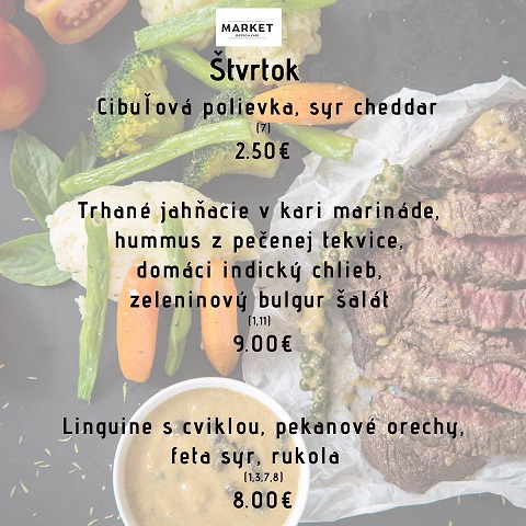 Obedové menu reštaurácie Market Bistro & Cafe 29. september až 3. október