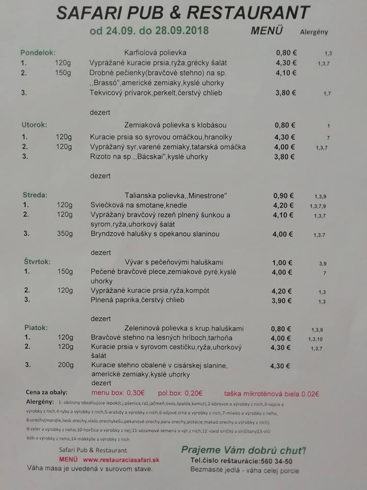 Projekt EVSObedové menu reštaurácie SAFARI PUB & RESTAURANT: 24. až 28. september23.9.2018, 23:18Peter GáborŠamorínčan a reštaurácia SAFARI PUB & RESTAURANT Vám prináša obedové menu na aktuálny týždeň.Zdieľať:Podobné články Prieskum podnikateľského prostredia v Šamoríne - inovácie, spokojnosť v regióne a ťažkosti s podnikaním21.12.2020, 11:00 Prieskum podnikateľského prostredia v Šamoríne - základné informácie a zručnosti a kvalifikácia12.12.2020, 13:11 Nechajte si svoj obed doviezť domov, alebo do práce19.10.2020, 09:58 Obedové menu reštaurácie Market Bistro & Cafe 19. október až 23. október19.10.2020, 09:55 Obedové menu reštaurácie Market Bistro & Cafe 5. október až 10. október5.10.2020, 08:15 Nechajte si svoj obed doviezť domov, alebo do práce5.10.2020, 08:13