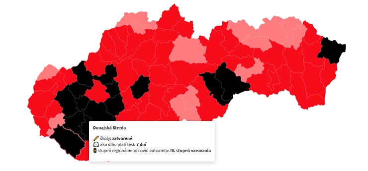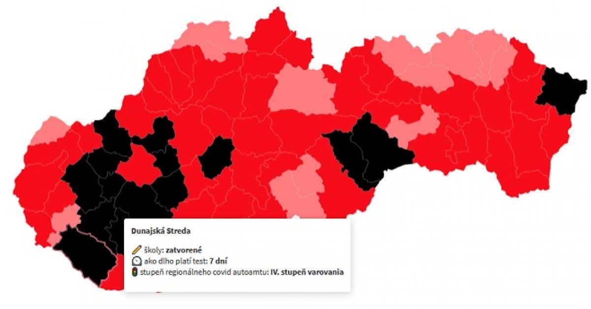 V zásade platí, že v čiernych okresoch, ktorých je už viac, musia zostať školy zatvorené. Testy na cestu do práce platia max. 7 dní.