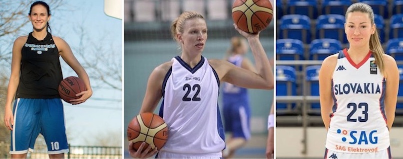 Tri Šamorínčanky v reprezentačnom tíme Slovenska. Sabína Oroszová (vľavo, Piešťanské Čajky), Romana Vyňuchalová (ŠBK Šamorín) a Angelika Slamová (Piešťanské Čajky).