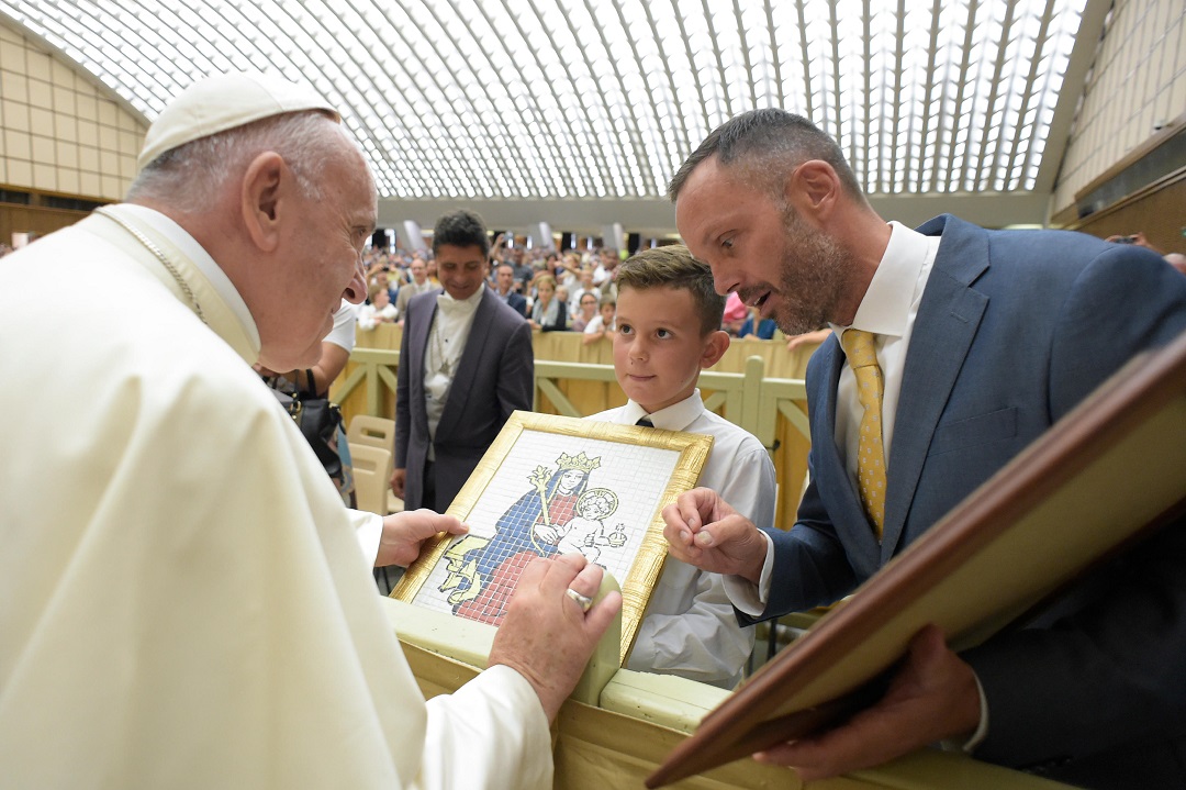 Nedávna návšteva pápeža Františka v mnohých z nás zanechala obrovskú stopu. Fakt, že svätý Otec navštívil našu krajinu je obrovskou poctou pre nás Slovákov. Táto udalosť nás, obyvateľov mesta Šamorín, preniesla späť do roku 2018 kedy hrdý Šamorínčan Rudolf Durdík sa na svojich cestách v Ríme stretol s pápežom Františkom, svojim menom Jorge Mario Begoglio a daroval mu obraz s erbom nášho mesta. Pán Durdík tiež dal vyhotoviť veľký obraz Panny Márie, patrónky nášho mesta, držiacej Ježiša Krista vo svojom náručí. Toto dielo s naším erbom v roku 2018 Svätý otec požehnal a dnes zdobí kanceláriu primátora nášho mesta. Oba obrazy namaľoval umelec menom Fabio Todescato, ktorý pochádza z Vincenzy. Vráťme sa ale do doby spred troch rokov a zistime, ako sa všetko stalo.