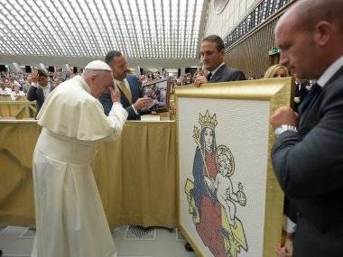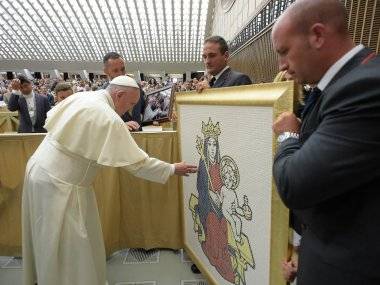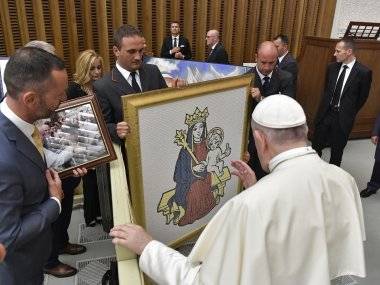 Pre naše mesto však bol obrovskou poctou hlavne väčší obraz požehnaný Svätým otcom, ktorý si prešiel cestou z Ríma do Šamorína aj cez Vincenzu. Tento obraz bol prvé dva týždne pre verejnosť v kostle nanebovzatej Panny Márie a neskôr 6.októbra 2018 bol odovzdaný vtedajšiemu viceprimátorovi mesta. Dnes už primátor Csaba Orosz má tento obraz vo svojej kancelárií. Tento mesiac teda oslavujeme tretie výročie odovzdania tejto obrovskej vzácnosti nášmu mestu. „Vnímajúc obdobie po návšteve Svätého otca je teraz pre nás takáto udalosť ešte väčšou poctou, keďže aj pápež František sa raz priradí medzi „Svätých“ a práve preto má tento obraz pre nás veľkú duchovnú hodnotu.“ dodáva rodený Šamorínčan.