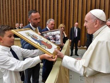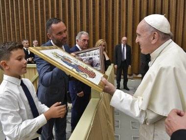 8.augusta 2018 sa vo Vatikáne na audiencií stretol s pápežom Františkom a splnil svoj sen. Menší obraz venoval pápežovi, ktorý si o našom meste vypočul rozprávanie rodáka Rudolfa. „Väčšina darov pre pápeža Františka putujú do dražby. Ja som ho ale požiadal o to, aby tento obraz zdobil ktorúkoľvek sakristiu, palác či kostol.“ vysvetľuje pán Durdík. Podľa poslednej informácie tejto prosbe pápež František vyhovel a obraz visí v sakristií vo Vatikáne. Okrem obrazu mu bola darovaná aj brožúrka Šamorína, ktorú si pápež so záujmom prezrel.