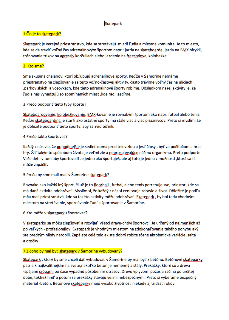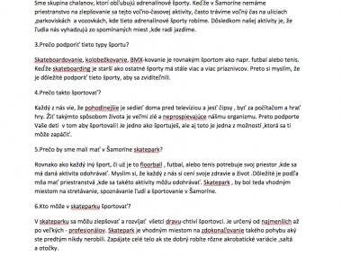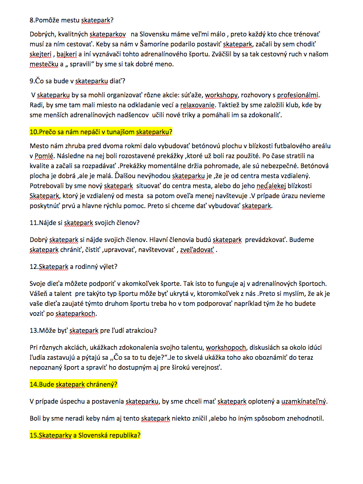 Chlapci uviedli, že ich v tejto veci požiadal pán primátor, aby v meste a medzi Šamorínčanmi spravili anketu. Ľudia majú povedať, či sú za skatepark park v Pomlé alebo v centre mesta.