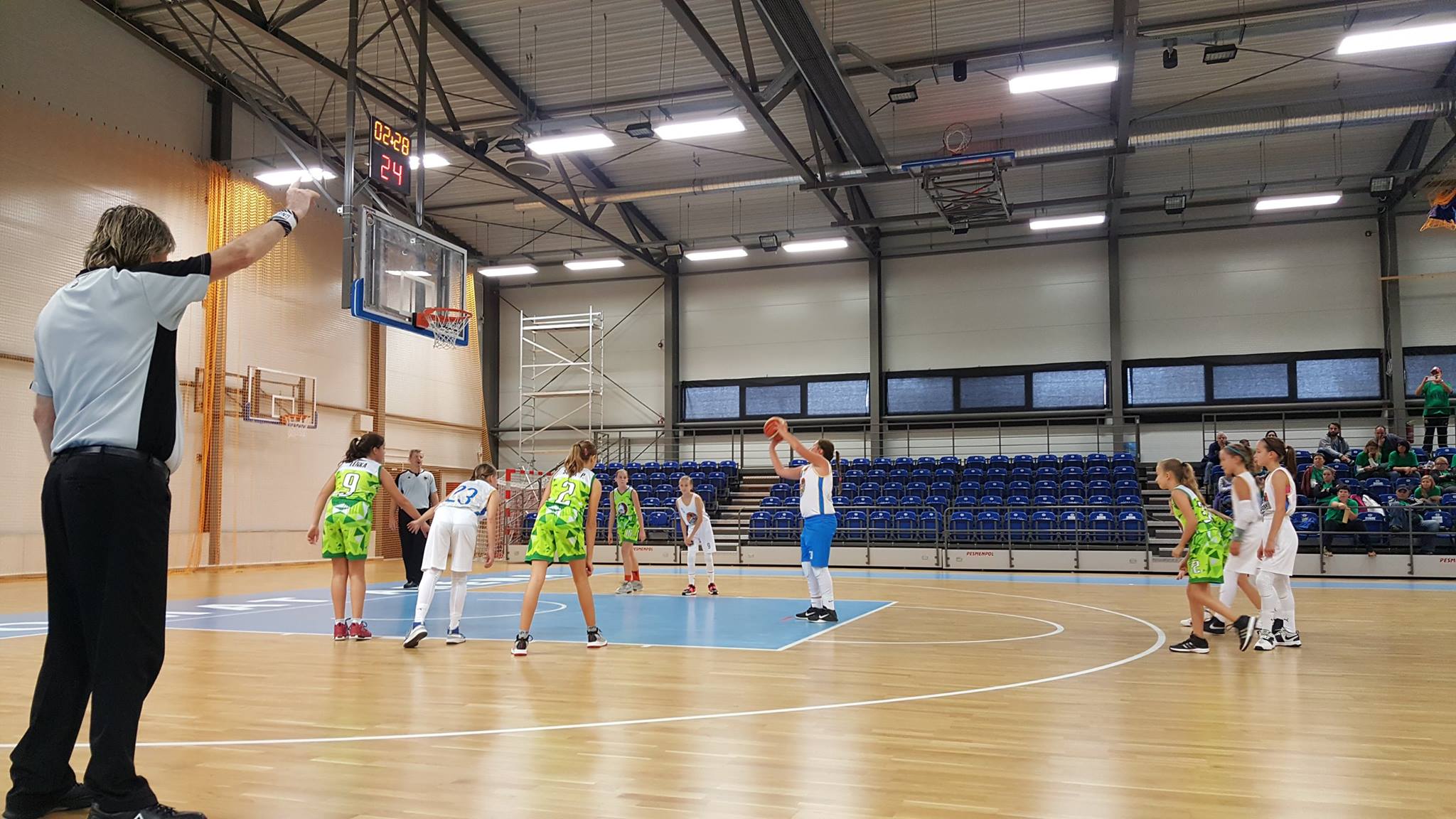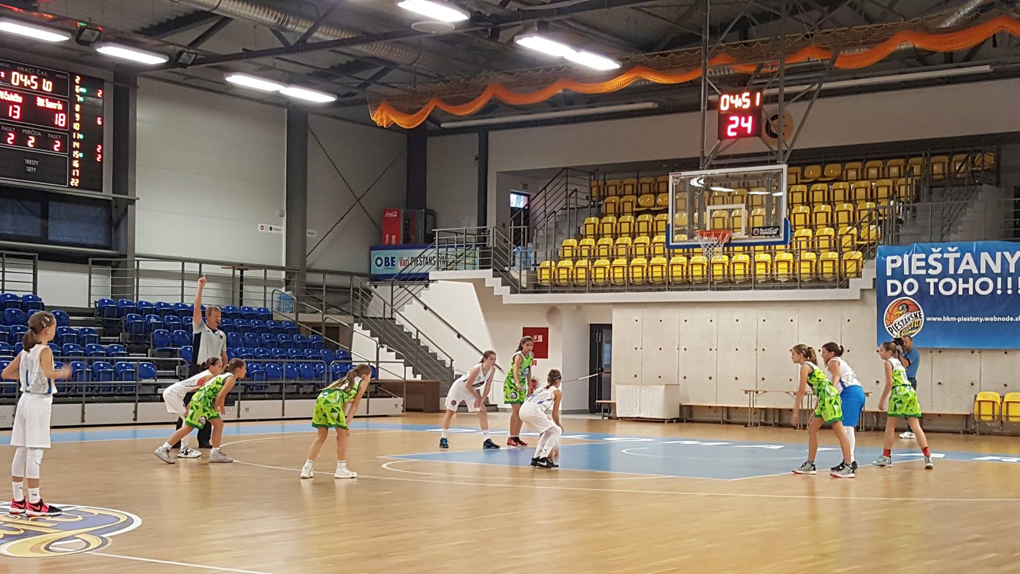 V nedeľu 22.10.2017 sa naše staršie mini žiačky v 3. kole stretli s ďalším kvalitným súperom, družstvom Piešťanských čajočiek. Prvý krát si niektoré hráčky zahrali na palubovke Diplomat arény. Počas prvého zápasu sa striedali lepšie chvíľky s horšími a hlavne vďaka oporám nášho tímu sme prvý zápas vyhrali 43:26 (štvrtiny 9:11, 17:6, 3:7, 14:2), bodovali Jančoková 19 bodov, Slama 8 bodov, Lelkes 6 bodov, Soóky, Varga, Kardošová, Tátošová V. a Fenes po 2 body.